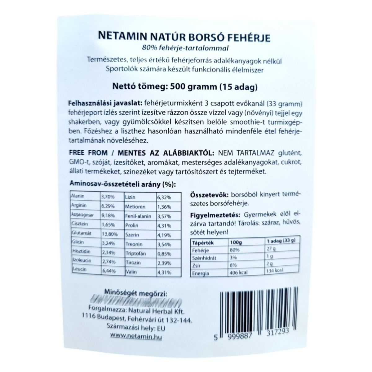 A Netamin Natúr Borsó Fehérje egy 80% fehérjetartalmú, teljes értékű növényi fehérjeforrás, amely adalékanyagoktól mentes. Alkalmas lehet sportoláshoz, fogyókúrához és az egészséges életmód támogatására.