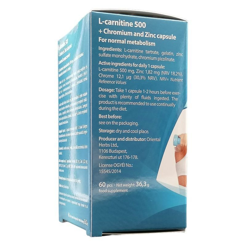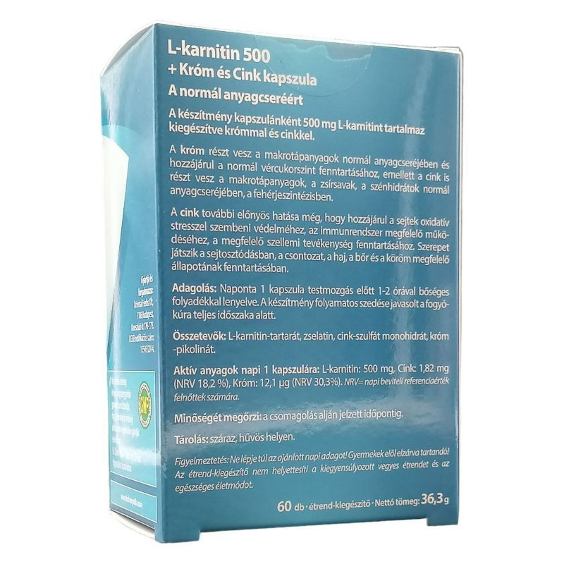 Fiatalok és idősek, az aktív életvitelt élők, a sportolást kedvelők számára egyaránt ajánlott hatóanyagok. A készítmény kapszulánként 500 mg l-karnitint tartalmaz kiegészítve krómmal és cinkkel. A króm részt vesz a makro tápanyagok normál anyagcseréjében és hozzájárul a normál vércukorszint fenntartásához, emellett a cink is részt vesz a makro tápanyagok, a zsírsavak, a szénhidrátok normál anyagcseréjében, a fehérjeszintézisben. A cink további előnyös hatása még, hogy hozzájárul a sejtek oxidatív stresszel szembeni védelméhez, az immunrendszer megfelelő működéséhez, a megfelelő szellemi tevékenység fenntartásához. Szerepet játszik a sejtosztódásban, a csontozat, a haj, a bőr és a köröm megfelelő állapotának fenntartásában.