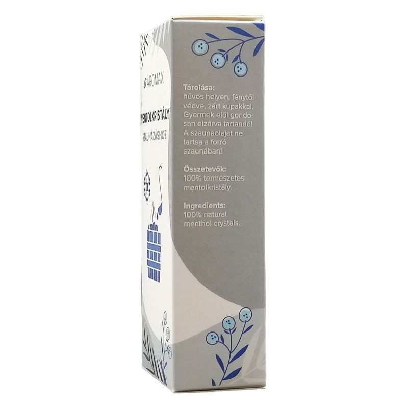 A mentolkristály intenzív, hűs, mentolos illatot áraszt, kellemesen frissíti, élénkíti a testet és a szellemet. Kiválóan alkalmazható tematikus szauna showkhoz is.