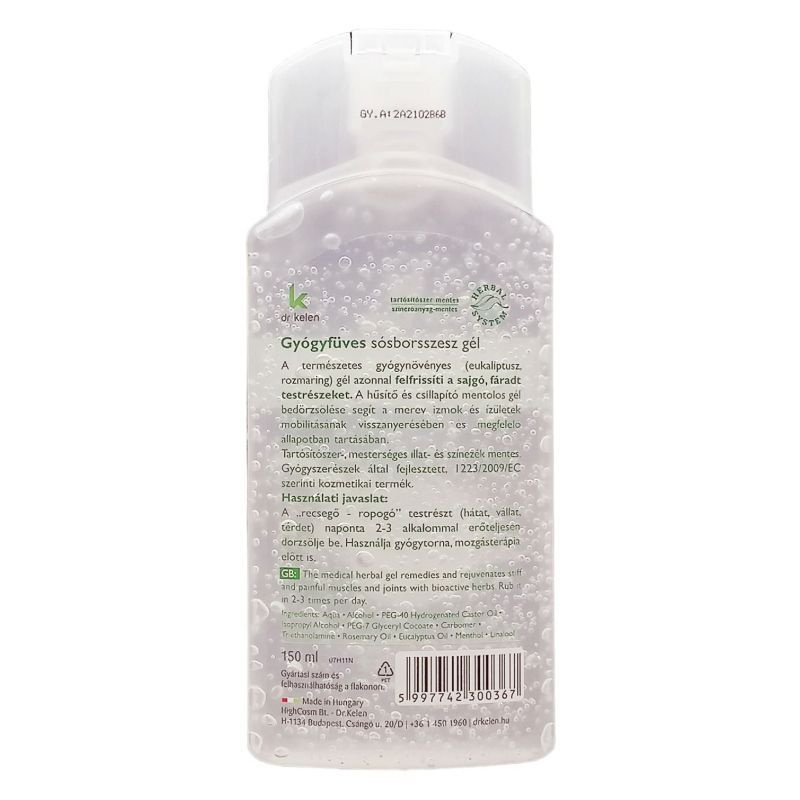 Sósborszesz gél gyógyfüves-kivonatokkal.
