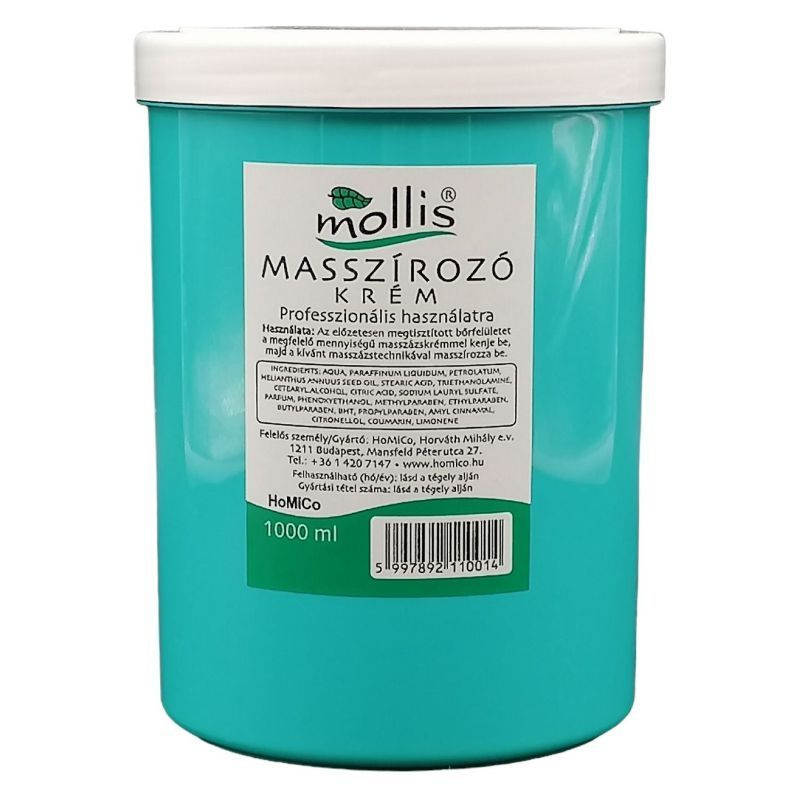 A Mollis masszírozó krém parafin tartalmú, gazdaságosan használható, nagyon jól csúszó masszázskrém.