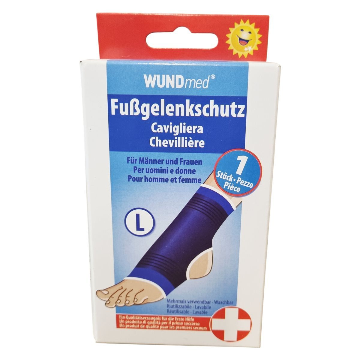 A WUNDmed elasztikus bokarögzítő kék színű, több méretben elérhető termék férfiak és nők számára. Minőségi elsősegély-ellátásra készült eszköz, mely újrafelhasználható és mosható. A termék nyitott sarok-résszel illetve lábfejjel rendelkezik, ezáltal biztosítva kényelmes viseletet. A stabilitás és a támasztás elősegíti a bokaszalagok védelmét és a gyógyulási folyamatot. Forgalmazza az ODP Vital Kft., gyártója a Wundmed GmbH & Co. KG, amely a minőség garanciája.