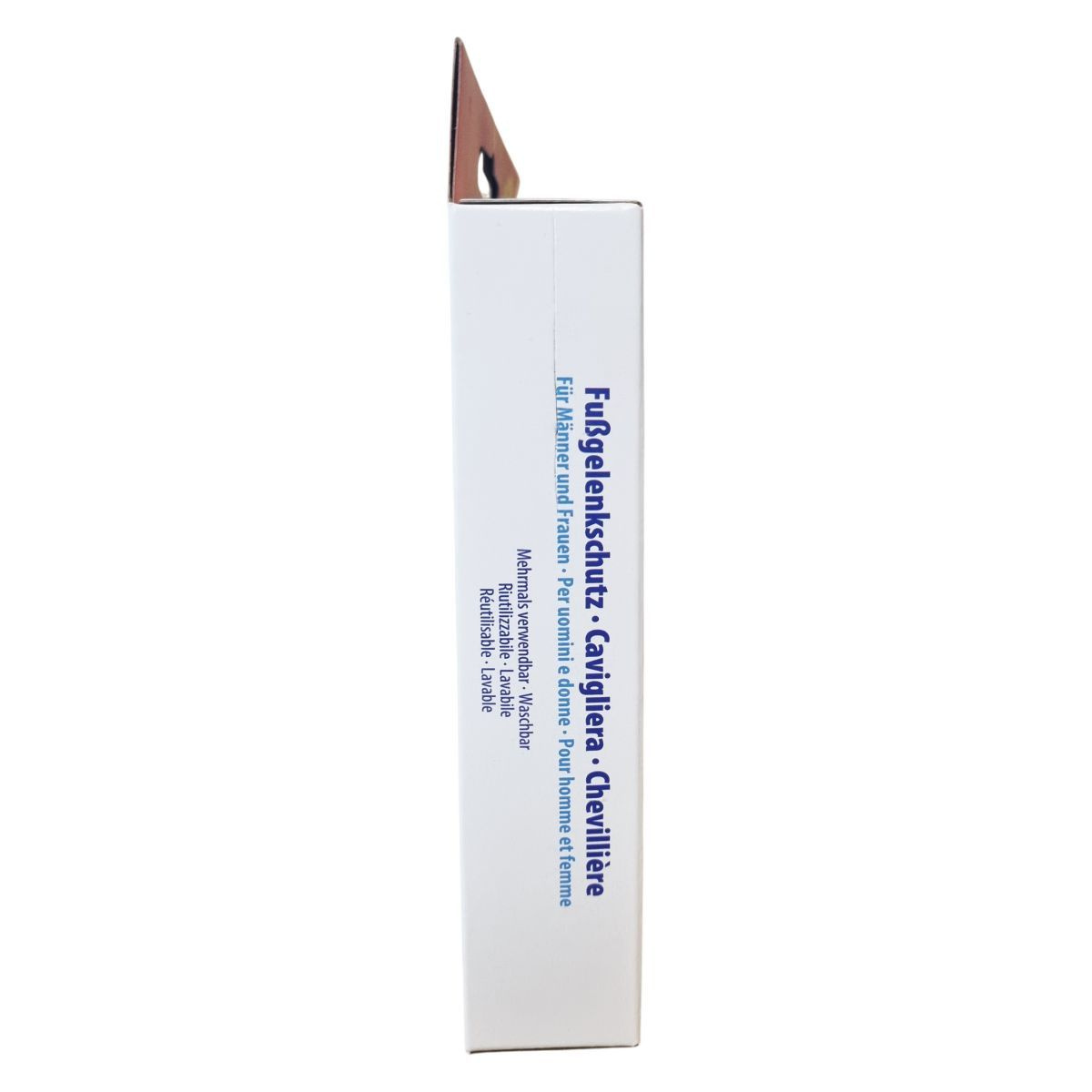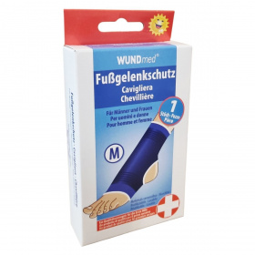 A WUNDmed® elasztikus bokarögzítő kék színű, nyitott sarokrésszel és lábfejjel készül, amely gyűrődés- és lecsúszásmentesen szorosan illeszkedik. Többször felhasználható és mosható, több méretben elérhető, férfiak és nők számára egyaránt alkalmas. Kiváló minőségű termék elsősegélyhez, amely hatékony támaszt nyújt bokasérülések esetén, elősegítve a gyógyulást és csökkentve a további sérülések kockázatát.