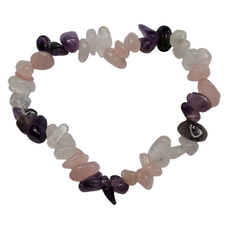 Immunrendszer erősítő-általános erősítő karkötő: ametiszt, hegyikristály, rózsakvarc. A karkötők erős, gumis damilból készültek - átlagos 18-20 centiméteresek.