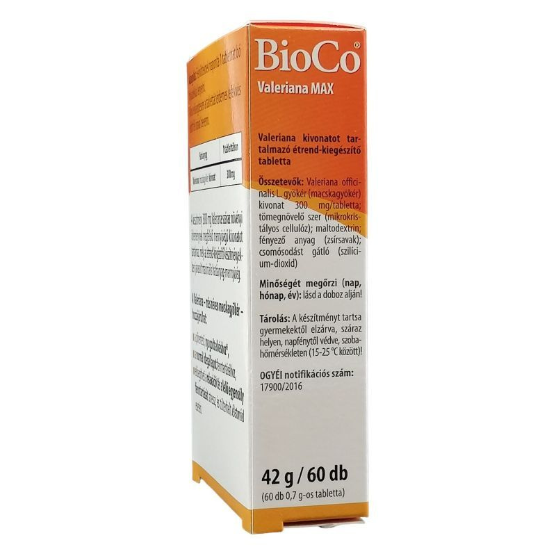 Valeriana kivonatot tartalmazó étrend-kiegészítő tabletta.