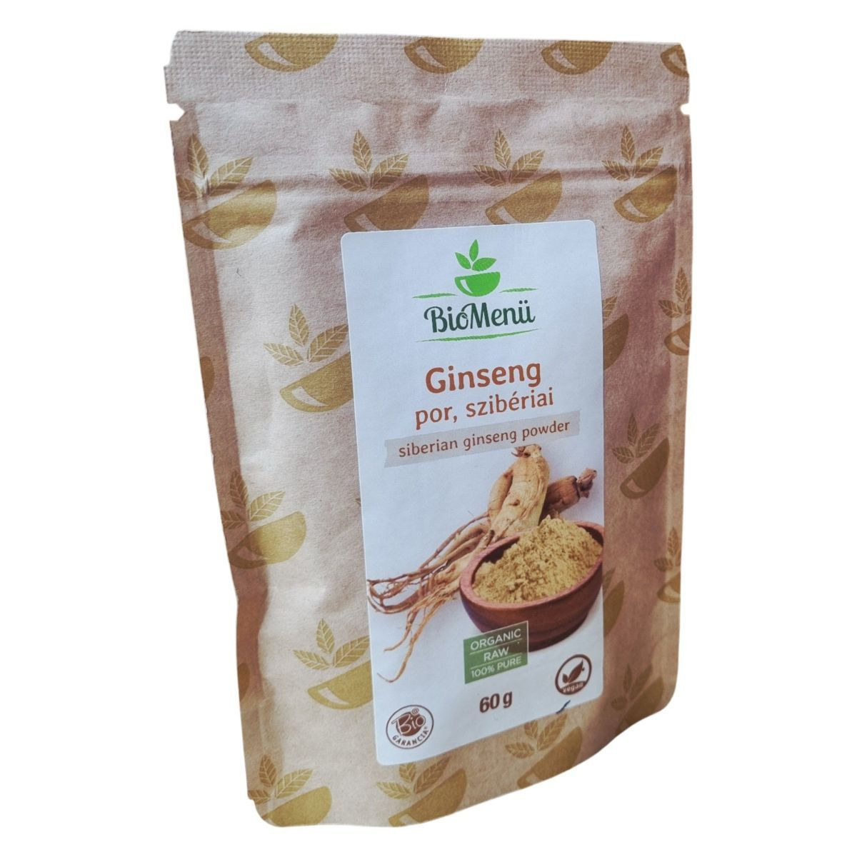 A BioMenü szibériai ginzeng por egy 100% bio, vegán és raw termék, amely szibériai ginzengből (Eleutherococcus senticosus) készül. Támogathatja a szervezet természetes védekezőképességét és hozzájárulhat az általános jóléthez.