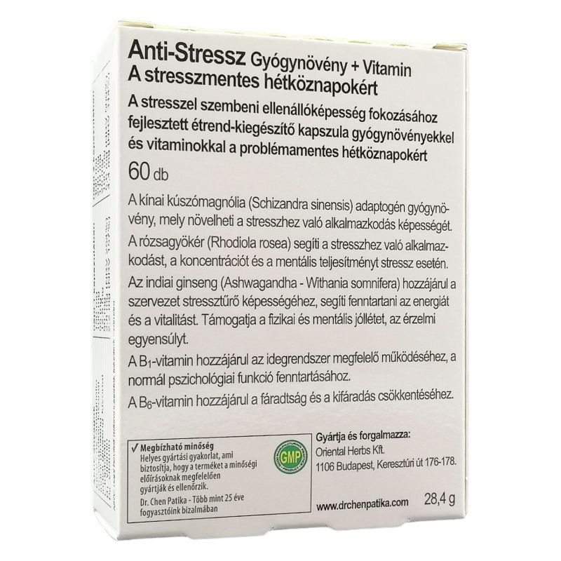 A stresszel szembeni ellenállóképesség fokozásához fejlesztett étrend-kiegészítő kapszula gyógynövényekkel és vitaminokkal a problémamentes hétköznapokért.