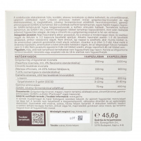 Golgotavirág-kivonat, magas L-teanin tartalmú zöldteakivonat, citromfűkivonat, gamma-amino-vajsav (GABA), pullulán (Plantcaps® vegán kapszula)