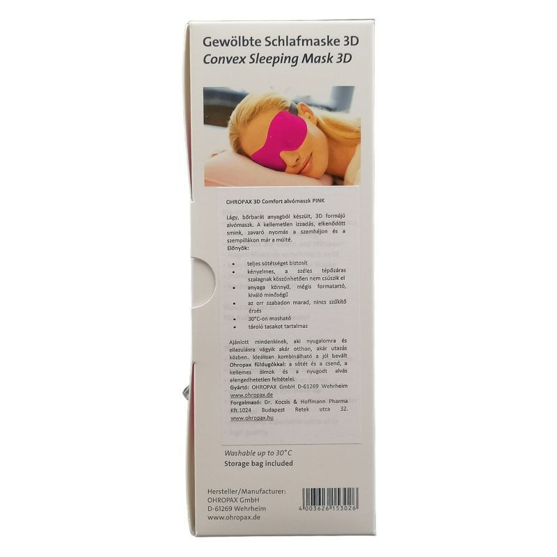 Lágy, bőrbarát anyagból készült, 3D formájú alvómaszk. A kellemetlen izzadás, a zavaró nyomás a szemhéjon és a szempillákon már a múlté, teljes sötétséget biztosít. Kényelmes, a széles tépőzáras szalagnak köszönhetően nem csúszik el, anyaga könnyű, mégis formatartó, kiváló minőségű, az orr szabadon marad, nincs szűkítő érzés. Ideálisan kombinálható a jól bevált Ohropax füldugókkal: a sötét és a csend, a kellemes álmok és a nyugodt alvás elengedhetetlen feltételei. Ajánlott mindenkinek, aki nyugalomra és ellazulásra vágyik akár otthon, akár utazás közben.