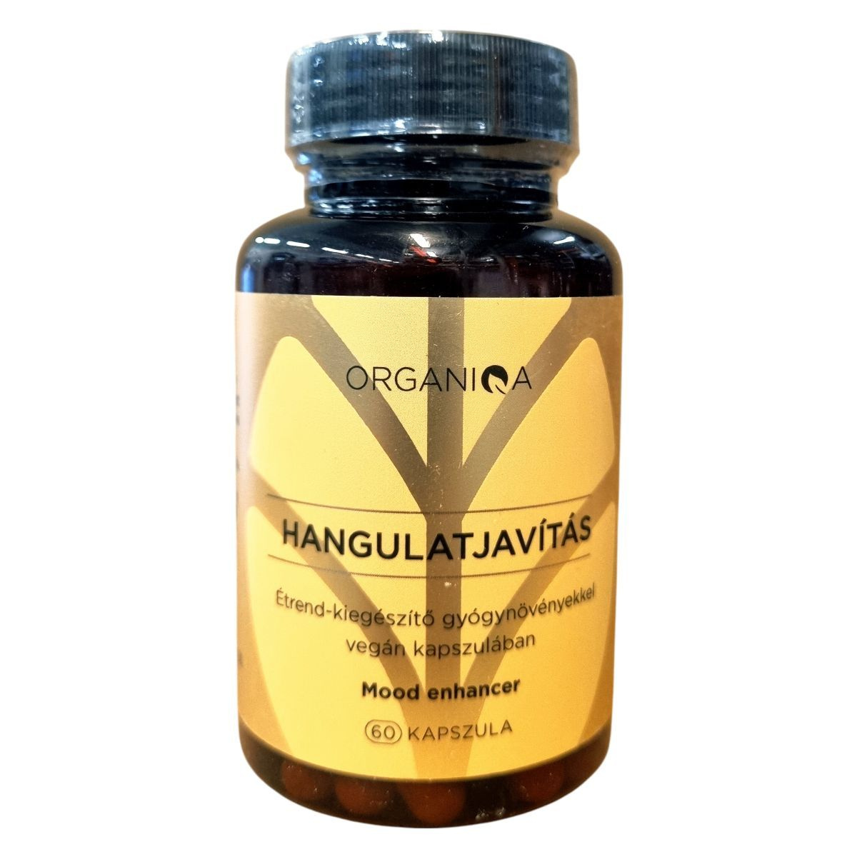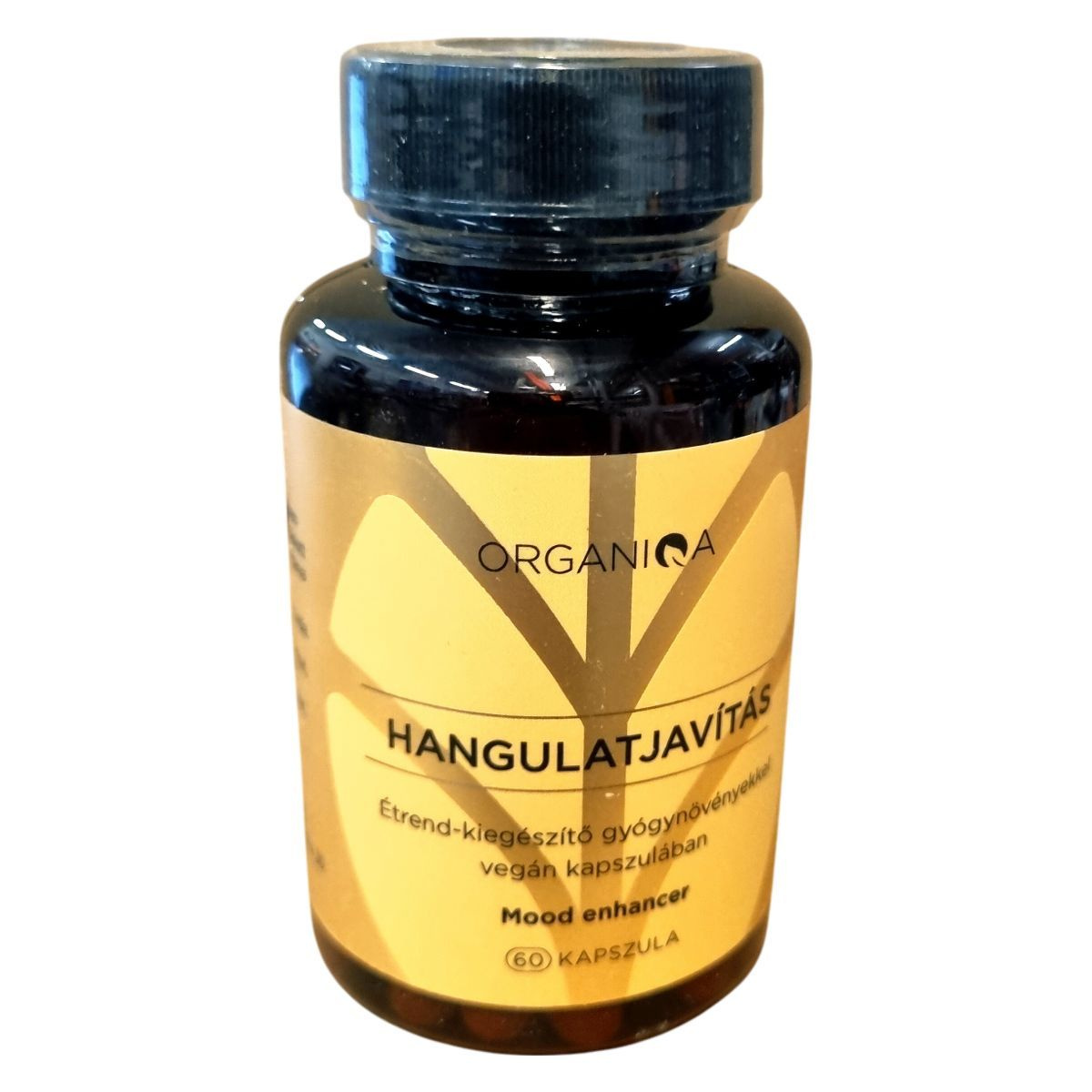Az Organiqa Hangulatjavítás étrend-kiegészítő gyógynövényekkel készült, és vegán kapszulában érhető el. A termék különféle növényi kivonatokat tartalmaz, mint például aranygyökér, orbáncfű, bengáli bársonybab, szent bazsalikom, édesgyökér, ginzeng és citromfű, amelyek hozzájárulhatnak a hangulat javításához. A termék Indiából származik, és a forgalmazója az Organiqa Team Kft. A termék OGYÉI-notifikált, és fontos, hogy a javasolt napi mennyiséget ne lépjük túl. Tárolása száraz, hűvös helyen ajánlott.