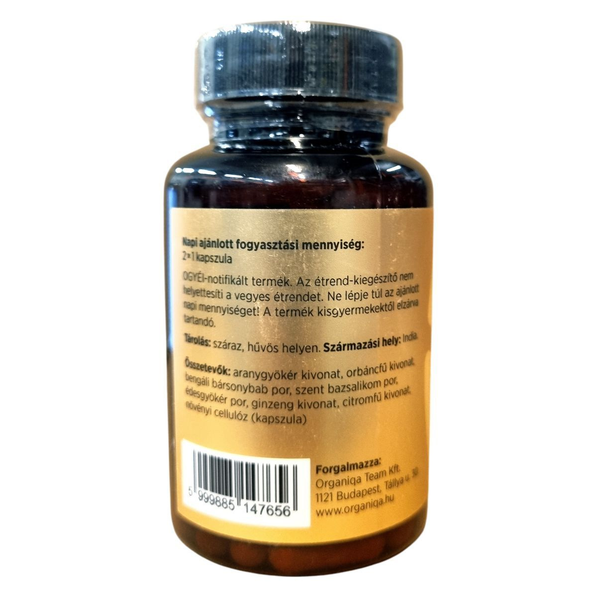 aranygyökér kivonat, orbáncfű kivonat, bengáli bársonybab por, szent bazsalikom por, édesgyökér por, ginzeng kivonat, citromfű kivonat, növényi cellulóz (kapszula)