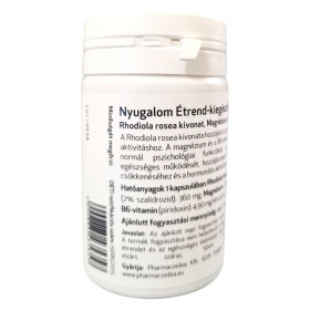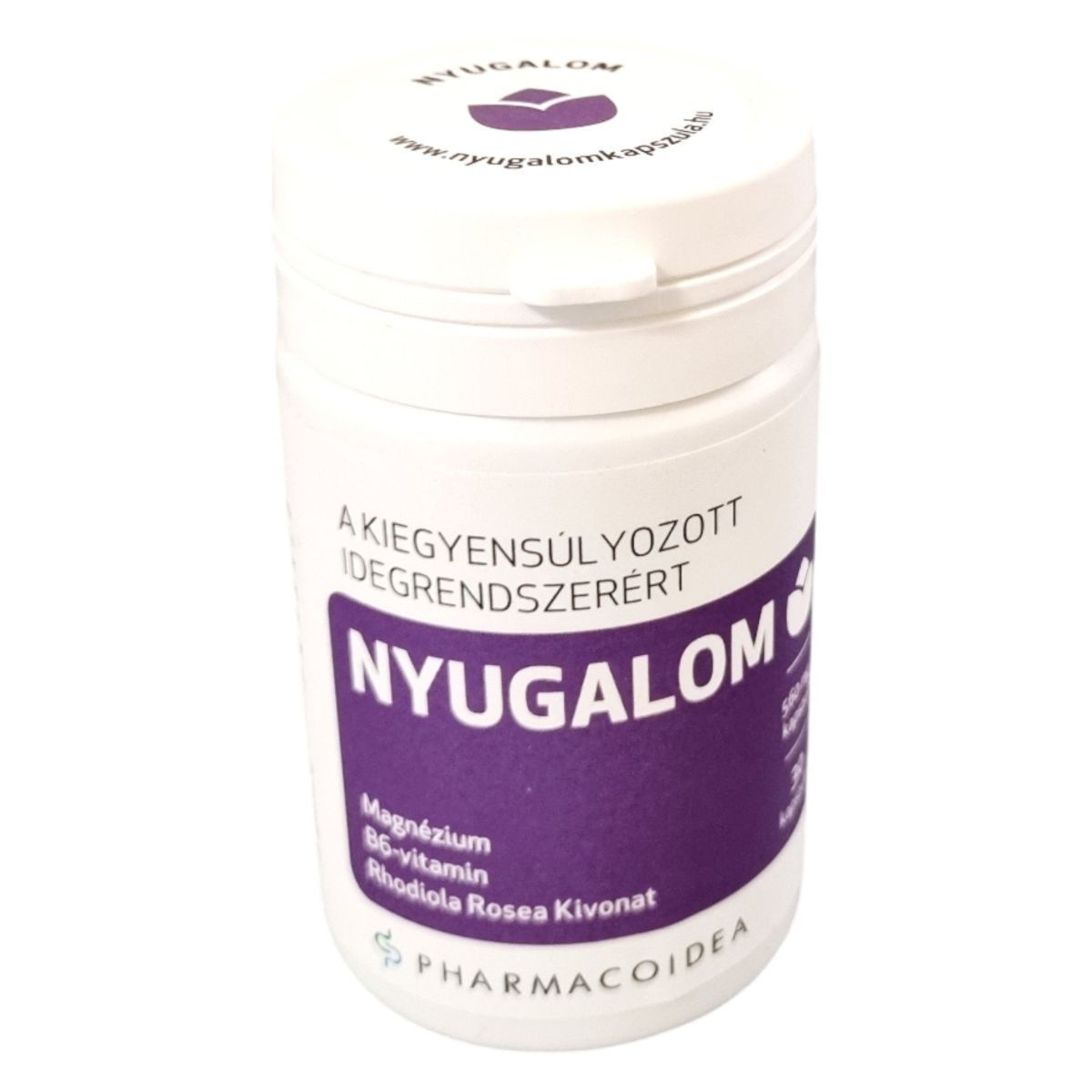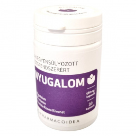 A Pharmacoidea Nyugalom étrend-kiegészítő Rhodiola rosea kivonatot, magnéziumot és B6-vitamint tartalmaz, amelyek hozzájárulhatnak az optimális szellemi aktivitáshoz, a normál pszichológiai funkciók támogatásához, az idegrendszer egészséges működéséhez, a fáradtságérzés csökkenéséhez és a hormonális aktivitás szabályozásához. A termék napi ajánlott fogyasztási mennyisége 1 kapszula, amely biztosítja a szükséges hatóanyagokat. A termék fogyasztása nem helyettesíti a kiegyensúlyozott étrendet és az egészséges életmódot. Gyermekek elől gondosan elzárva, hűvös, száraz helyen tárolandó. Gyártja a Pharmacoidea Kft., Szegeden.