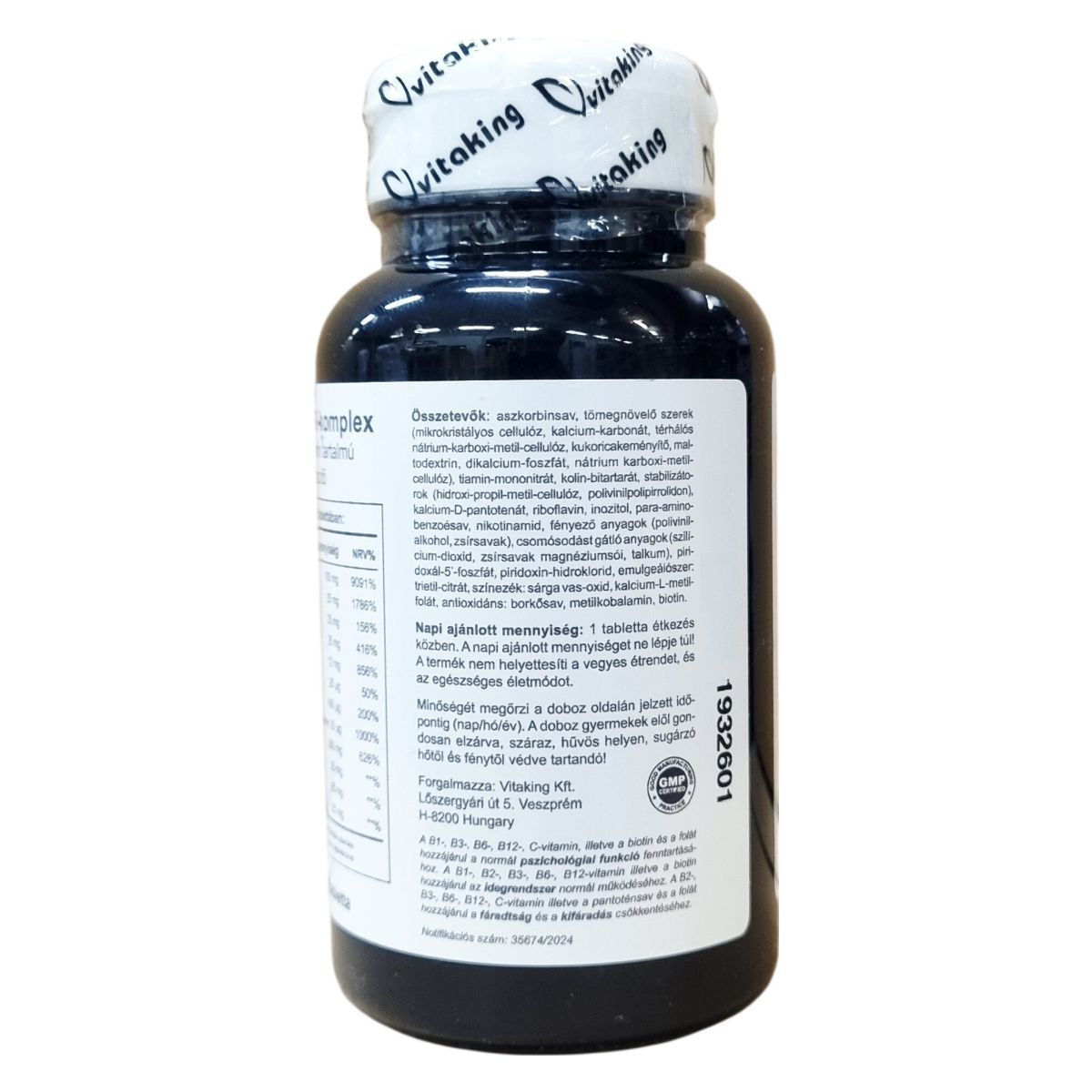 A B-komplex vízoldékony vitaminok csoportját jelenti, amely magában foglalja többek között a B1- (tiamin), B2- (riboflavin), B3- (niacin), B5- (pantoténsav), B6- (piridoxin), B7- (biotin), B9- (folát) és B12-vitamint (kobalamin). Ezek a mikrotápanyagok koenzimként vesznek részt a sejtszintű energiatermelésben, a szénhidrát-, zsír- és fehérje-anyagcserében, valamint az idegrendszer működésében és a vérképzésben. A B-vitaminok egymással szinergiában működnek, ezért kombinált bevitelük támogathatja az anyagcsere-folyamatok összehangolt működését. Vízoldékonyságuk miatt rendszeres pótlásuk indokolt lehet hiányos étrend vagy fokozott szükséglet esetén. A biztonságosság általában kedvező, de egyes komponensek nagy dózisban mellékhatásokat okozhatnak. Egyéni egészségügyi állapot vagy gyógyszerszedés esetén javasolt szakemberrel konzultálni.