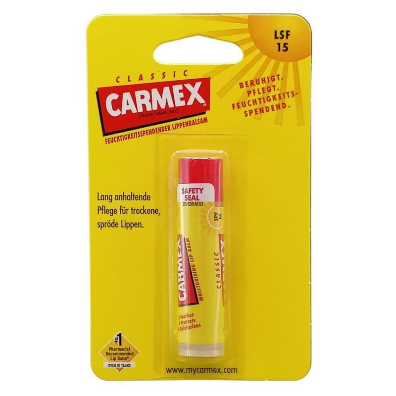 A Carmex ajakápoló stift gyors és hatékony segítséget jelent a száraz, repedezett ajkak számára, hidratáló és fényvédő összetételének köszönhetően. SPF15 fényvédővel van ellátva, hogy a nyári napsütés se lehessen akadály! Néhány perccel indulás előtt kenje fel, hogy kifejthesse hatását! Szilárd állagú, tekerős stift, azoknak, akik a megszokott kiszerelésű ajakápolókat kedvelik.