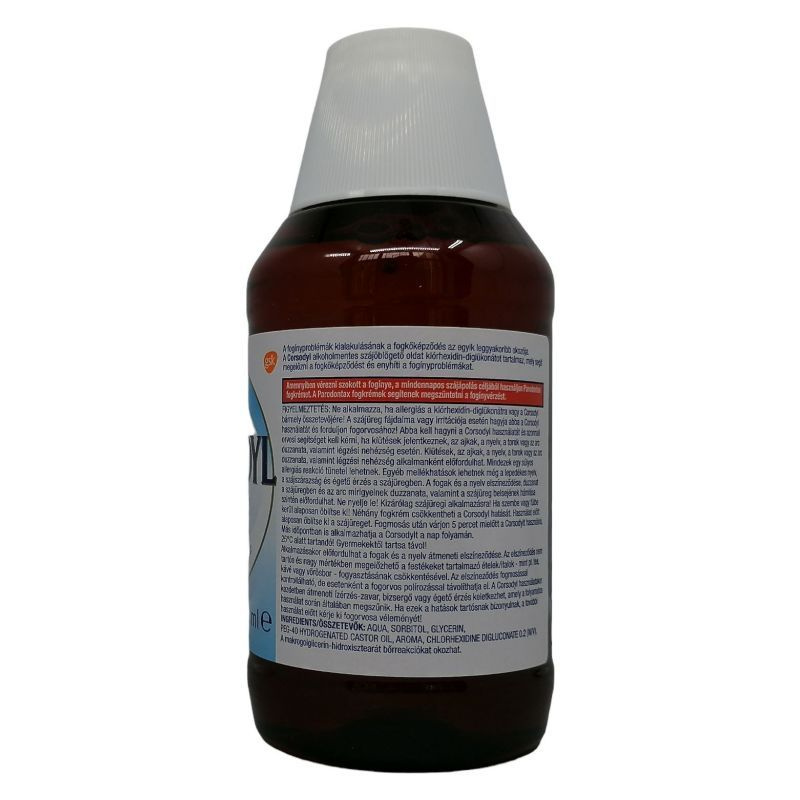 A Corsodyl alkoholmentes szájöblögető oldat antibakteriális hatása révén több órán keresztül védi a fogakat és a fogínyt azon káros baktériumoktól és kórokozóktól, amelyek fogkőképződés, a fogíny-, fogágy-, és a fogkőgyökér gyulladás gyakori kiváltói. Javasolt alkalmazása: 30 napon keresztül öblögetni a termékkel (2 üveg).