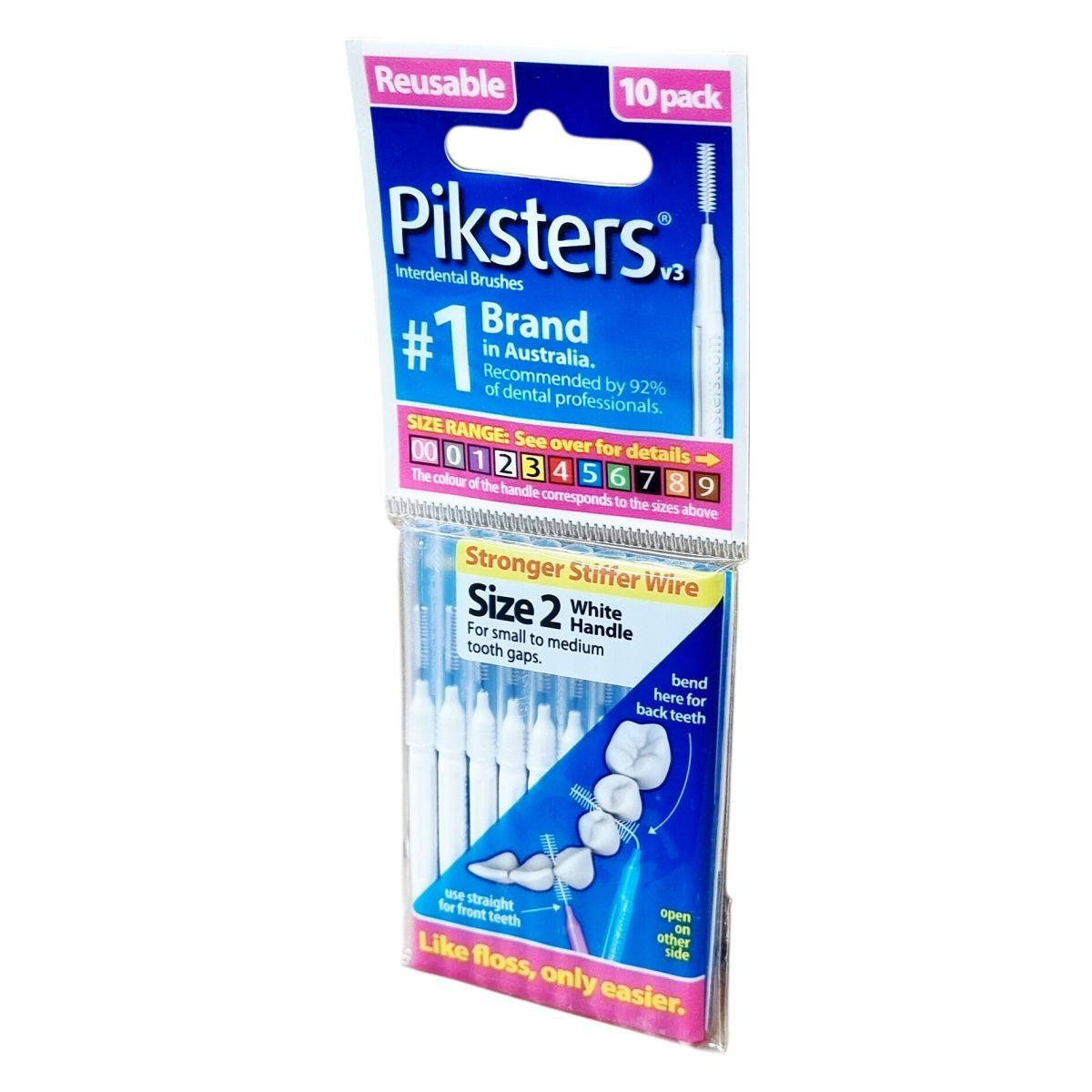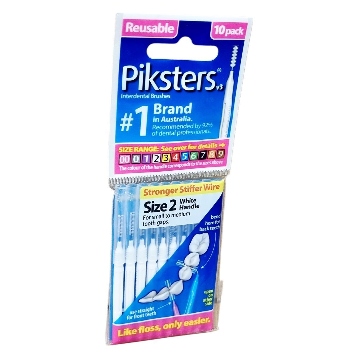 A Piksters fogköztisztító kefe erős és merev drótokkal rendelkezik, amelyek megakadályozzák az elgörbülést, és a fogkefe fogantyúja színes, a különböző méretek könnyű azonosítása érdekében. A kefe méretei a 00-tól 9-ig terjednek, és a fogközök méretéhez igazíthatók különböző vastagságú és kialakítású kefékkel. A kefe használata megkönnyíti a fogak közötti tisztítást, hasonlóan a fogselyemhez, azonban egyszerűbb kezelhetőséget biztosít. A fogköztisztító kefe különösen ajánlott azok számára, akiknél a hagyományos fogselyem nem elég hatékony. A terméket Ausztráliában tervezték, Kínában gyártják.