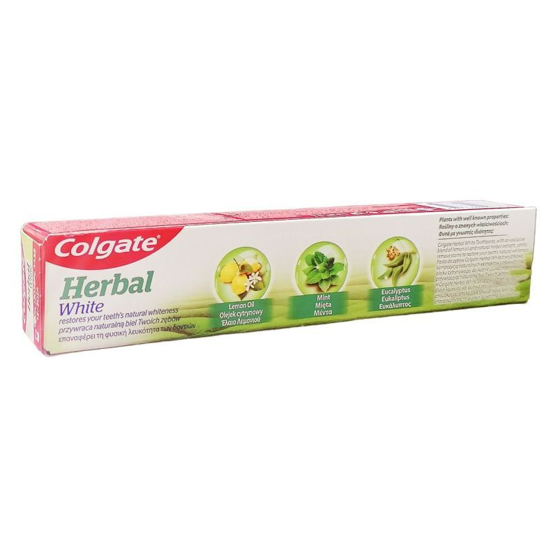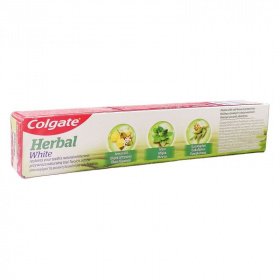 A Colgate Herbal White fogkrém természetes gyógynövényeket, citromkivonatot és szódabikarbónát tartalmaz, így kíméletesen távolítja el az elszíneződéseket. Eukaliptusszal és citromfűvel.