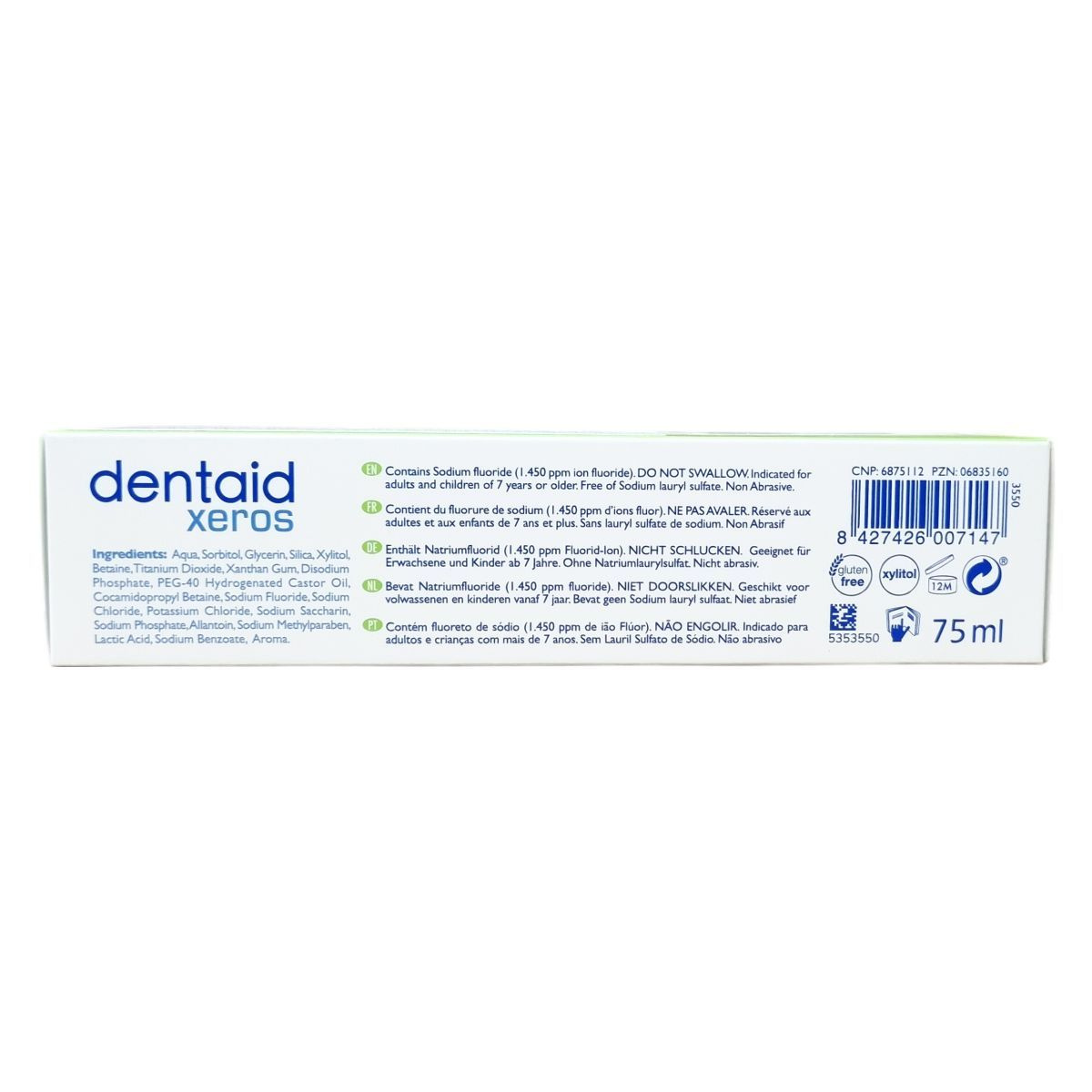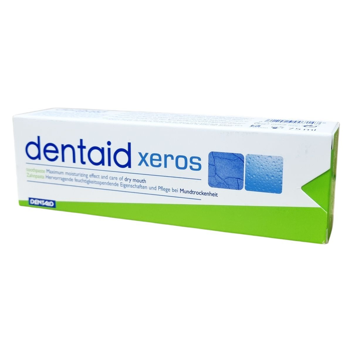 A Dentaid Xeros fogkrém különösen szájszárazságban szenvedők napi szájhigiénéjéhez készült. Hidratáló képessége kiváló, enyhíti a szájszárazság kellemetlen tüneteit, miközben erősíti a fogzománcot és megakadályozza a rossz lehelet kialakulását. A termék nem tartalmaz nátrium-lauril-szulfátot, ezáltal kíméletes a fogakhoz és a száj nyálkahártyájához. Széles körben elérhető Európában, valamint több más országban is forgalmazzák szakértői boltokban és gyógyszertárakban. A termék 75 ml kiszerelésű tubusban érhető el. A család további tagjai között szájspray, szájvíz és gél is megtalálható a Xeros termékcsaládban.