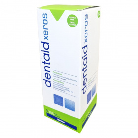 A Dentaid Xeros szájvíz speciálisan a szájszárazságban szenvedők számára készült, amely enyhíti a szájszárazság érzetét, erősíti a fogzománcot, és gátolja a rossz lehelet kialakulását. Alkohol-, erős ízesítés- és habképző anyag (nátrium-lauril-szulfát, SLS) mentes, ezáltal maximális komfortot nyújt. Termék xilitolt tartalmaz, gluténmentes, és 12 hónapig használható a csomagolás felbontása után.