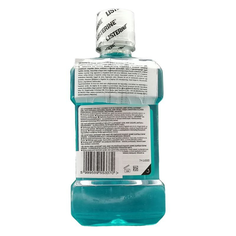 A Listerine Coolmint antibakteriális szájvíz illóolaj összetevőket tartalmaz: eukaliptol, timol, mentol és metil-szalicilát. Használatával több lepedék távolítható el, mint csupán a fogmosással. Hosszú távú használatra is alkalmas. Használat: használja naponta kétszer, fogmosás után. Öntsön 4 teáskanálnyi folyadékot egy pohárba, öblögessen fogai és ínye körül 30mp-ig, majd köpje ki.