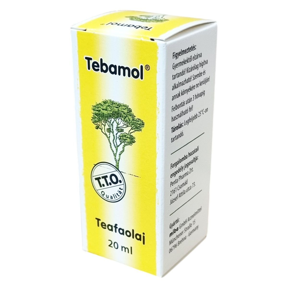 A Tebamol® teafaolaj gyógyszernek nem minősülő, gyógyhatású készítmény, melynek hatását szakirodalmi adatok igazolják. Külsőleg alkalmazandó, különféle bőrfertőzések és gyulladások enyhítésére, beleértve a száj- és fogínygyulladást, valamint vágott vagy horzsolt sebeket. Alkalmazása előtt mindig hígítani kell, és ügyelni kell, hogy ne kerüljön szem vagy annak környékére. A termék 20 ml-es kiszerelésben kapható, és felbontás után 3 hónapon belül javasolt felhasználni. Tárolása 25°C alatt ajánlott.