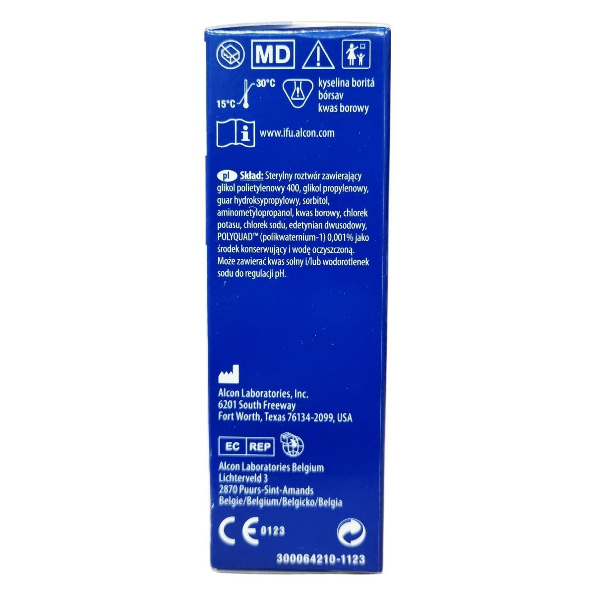 polietilén-glikol 400, propilén-glikol, hidroxi-propil-guar, szorbit, aminometil-propanol, bórsav, kálium-klorid, nátrium-klorid, dinátrium-edetát, POLYQUAD™ (polikvaternium-1) 0,001%, tisztított víz. Tartalmazhat sósavat és/vagy nátrium-hidroxidot a pH beállítására.