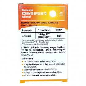 A BioCo A-vitamin készítmény napi 1 tabletta fogyasztásával magas dózisban biztosíthat A-vitamin pótlást, amely hozzájárulhat a normál látás, bőr és nyálkahártyák állapotának fenntartásához, valamint az immunrendszer és a sejtek működéséhez.