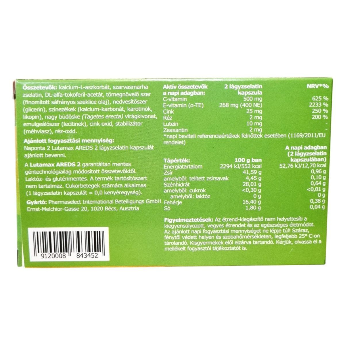 2 kapszulában: 52,76 kJ / 12,70 kcal