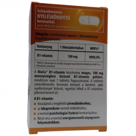 A BioCo B1-vitamin készítmény magas, 100 mg mennyiségben biztosít B1-vitamin pótlást, mindössze napi 1 tabletta fogyasztásával.