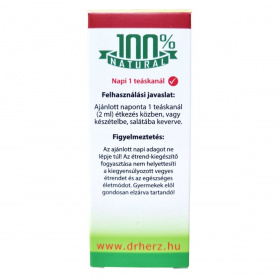 A Dr. Herz 100% Hidegen Sajtolt Kendermag Olaj egy természetes étrend-kiegészítő, amely hidegen sajtolt kendermag olajat tartalmaz. A termék gazdag omega-3 és omega-6 zsírsavakban, amelyek hozzájárulhatnak az egészséges étrend kiegészítéséhez. Az olaj kiváló minőségű és hígítatlan, így biztosítva a legjobb hatékonyságot. Ajánlott napi fogyasztása 1 teáskanál, amelyet étkezés közben, vagy készételbe, salátába keverve érdemes fogyasztani. A terméket hűvös helyen, fénytől védve kell tárolni, és fontos, hogy az ajánlott napi adagot ne lépje túl.