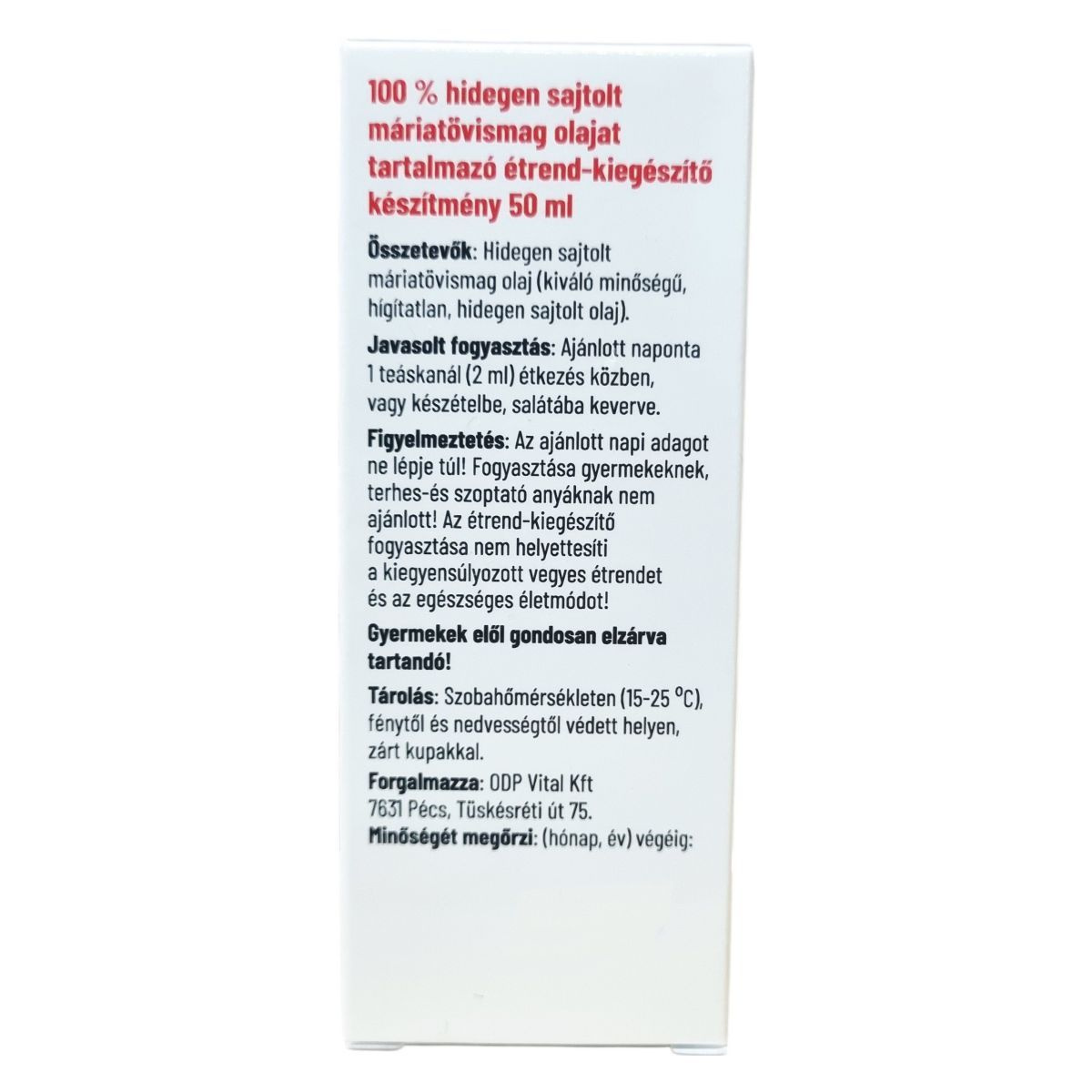 Hidegen sajtolt máriatövismag olaj 2 ml adagban