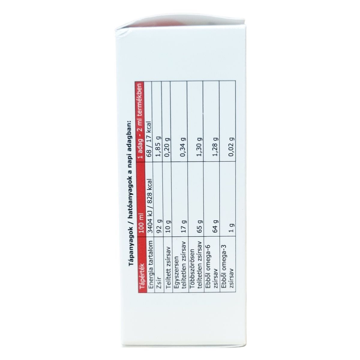 Zsír: 92 g, ebből telített zsírsav: 10 g
