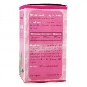 Terminalia arjunát tartalmazó étrend-kiegészitő kapszula. Az Arjuna India ősi gyógyászata, az Ayurveda szerint az a növény, amelyik segít a szívet egészségesen tartani, ezért évezredek óta használja a szív erősítésére. Alkalmazása jótékony hatással van a szívizom működésére, csökkenti a feszültséget és a vérnyomást. Aktív hatóanyagai tartalmaznak tanninokat, flavonoidokat, fitoszterolokat, ezenkívül ásványokat mint pl. kalcium, magnézium, cink és réz. Az Arjuna kapszula kúraszerű szedésével Ön is hozzájárulhat szíve egészségének megőrzéséhez.