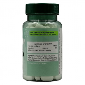 Összetevők: Kálium-glukonát, tömegnövelő szer (mikrokristályos cellulóz), csomósodást gátló anyagok (magnézium-sztearát, szilícium-dioxid).