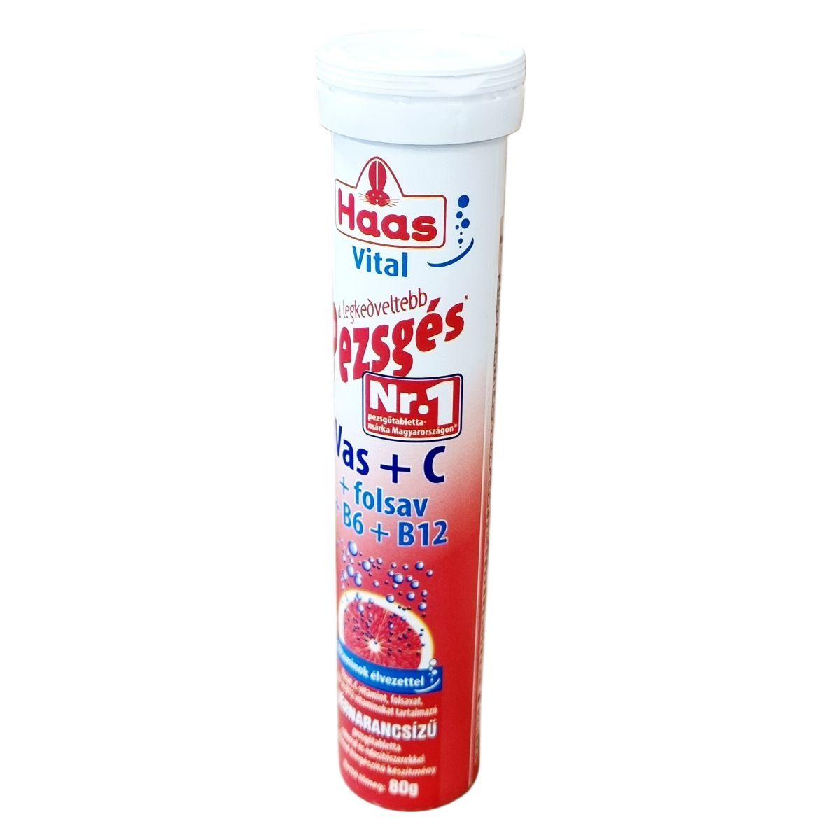 Vérnarancs ízű pezsgőtabletta vas, C-vitamin, folsav, valamint B6- és B12-vitamin tartalommal. A készítmény vízben oldva ital formájában fogyasztható, étrend-kiegészítőként. Nettó tömege 80 g.