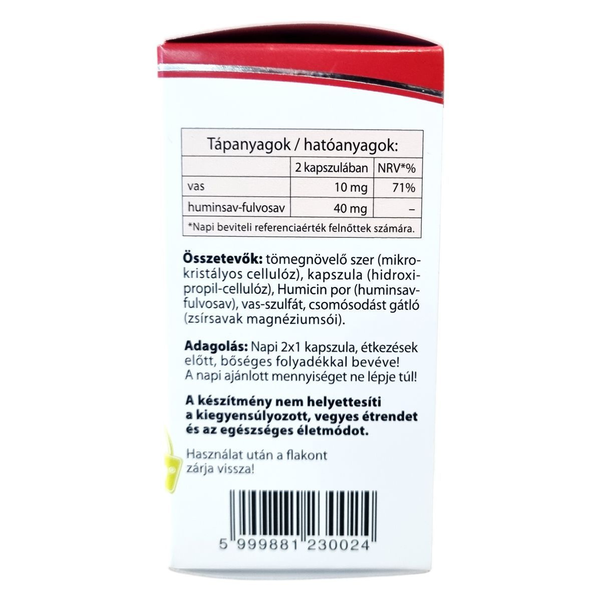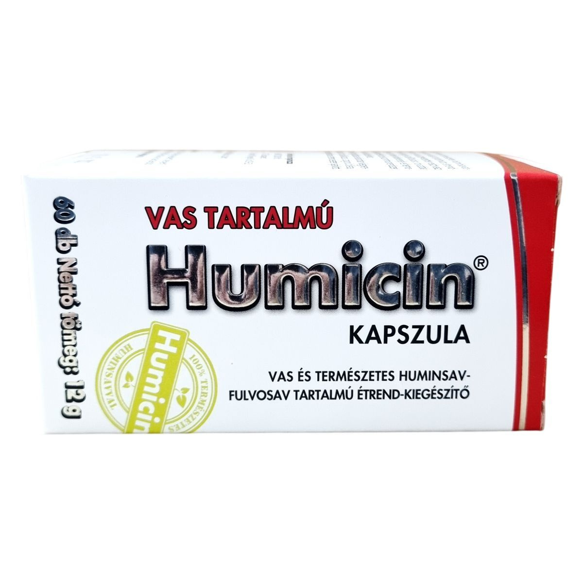 A Humicin® kapszula egy olyan étrend-kiegészítő, amely természetes huminsav-fulvosavat és vasat tartalmaz. A benne található vas a szervezet normál oxigénszállításában vesz részt, hozzájárulhat a normál vörösvérsejt- és hemoglobinképződéshez, valamint az immunrendszer megfelelő működéséhez. A termék fogyasztása elsősorban kiegyensúlyozatlan táplálkozás, szigorú diéta vagy vegetáriánus étrend esetén javasolt. A kapszula dózisa napi két alkalommal egy-egy kapszula, melyet étkezések előtt célszerű bőséges folyadékkal bevenni. A termék összetételében megtalálhatók a természetes huminsav-fulvosav keverék, vas-szulfát, mikrokristályos cellulóz, hidroxi-propil-cellulóz, valamint csomósodást gátló anyagok. A termék nem helyettesíti a kiegyensúlyozott étrendet és az egészséges életmódot.