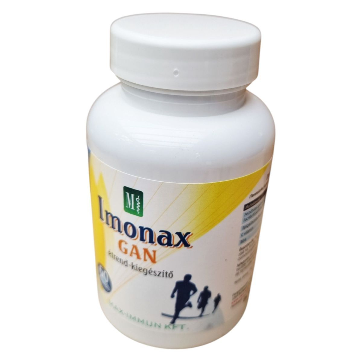 Az Imonax GAN egy flavonoidokat és gomba kivonatot tartalmazó étrend-kiegészítő, amely pecsétviaszgomba poliszacharidokat, epigallocatechin gallate-t és C-vitamint tartalmazhat. A termék napi adagja 1-2 kapszula, amely segíthet az immunrendszer támogatásában. A kapszulák összetevői között megtalálható a pecsétviaszgomba kivonat, zöld tea kivonat és Acerola gyümölcskivonat. A terméket száraz, hűvös helyen, nedvességtől óvva kell tárolni. A Max-Immun Kft. által forgalmazott termék nem helyettesíti a vegyes étrendet és az egészséges életmódot.