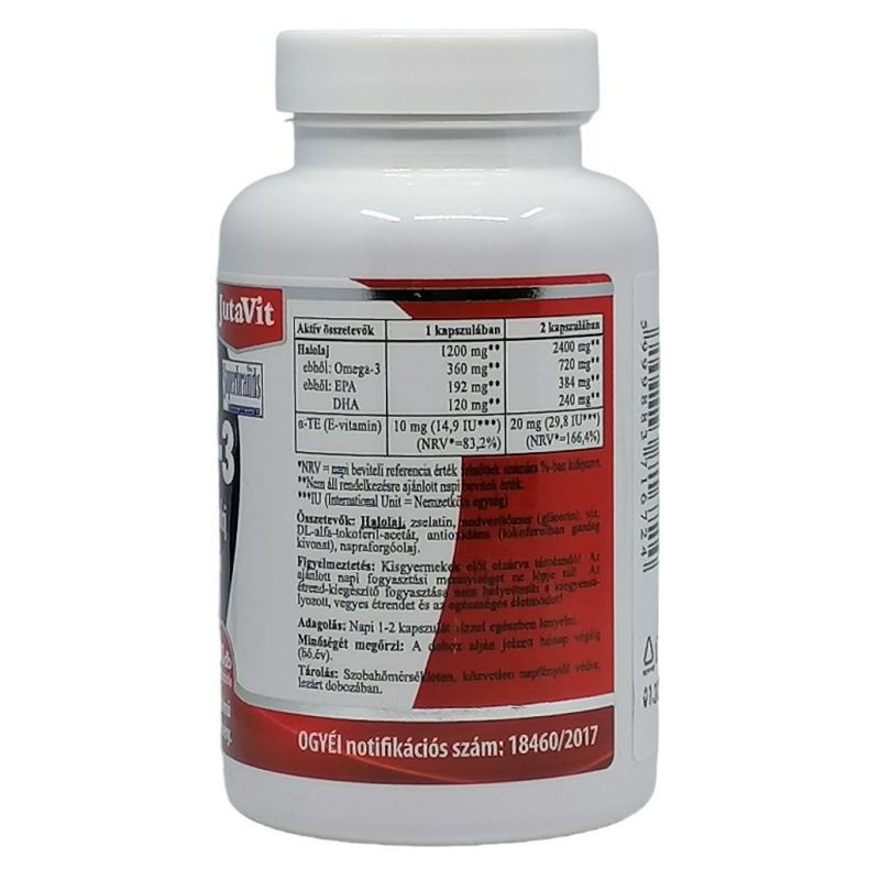 A JutaVit Omega-3 pro mélytengeri halolaj kapszula nagy mennyiségben tartalmaz többszörösen telítetlen EPA és DHA zsírsavakat.
