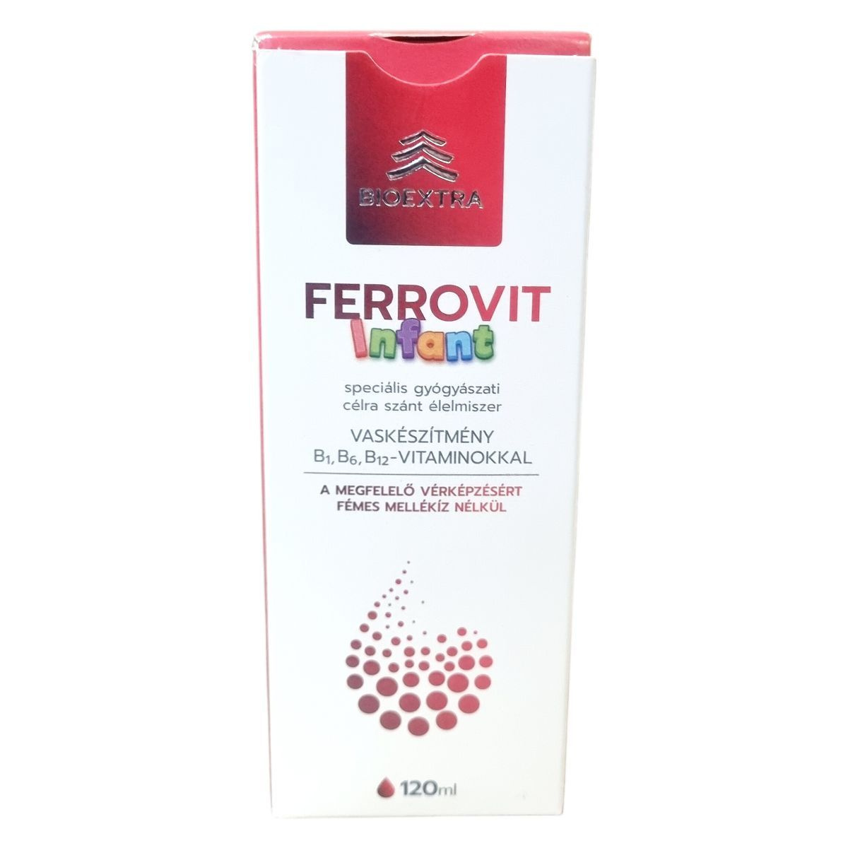 A BIOEXTRA FERROVIT Infant egy különleges gyógyászati célra szánt élelmiszer, amely vasat valamint B1-, B6- és B12-vitaminokat tartalmaz. Kifejezetten vashiányos csecsemők diétás ellátására fejlesztették ki, hogy támogassa a megfelelő vérképzést. A termék adagolása orvosi ellenőrzés mellett, a csomagoláson szereplő ajánlás szerint történjen. Felhasználása során figyelembe kell venni a figyelmeztetéseket és csak a javasolt mennyiségben szabad alkalmazni. A készítmény laktóz-, glutén- és titán-dioxid-mentes, felhasználása során biztosítani kell a megfelelő tárolást, hogy megőrizze minőségét. Nem alkalmazható parenterálisan, és használat előtt fel kell rázni. A termék nem helyettesíti a változatos étrendet és egyedüli tápanyagforrásként nem alkalmas.