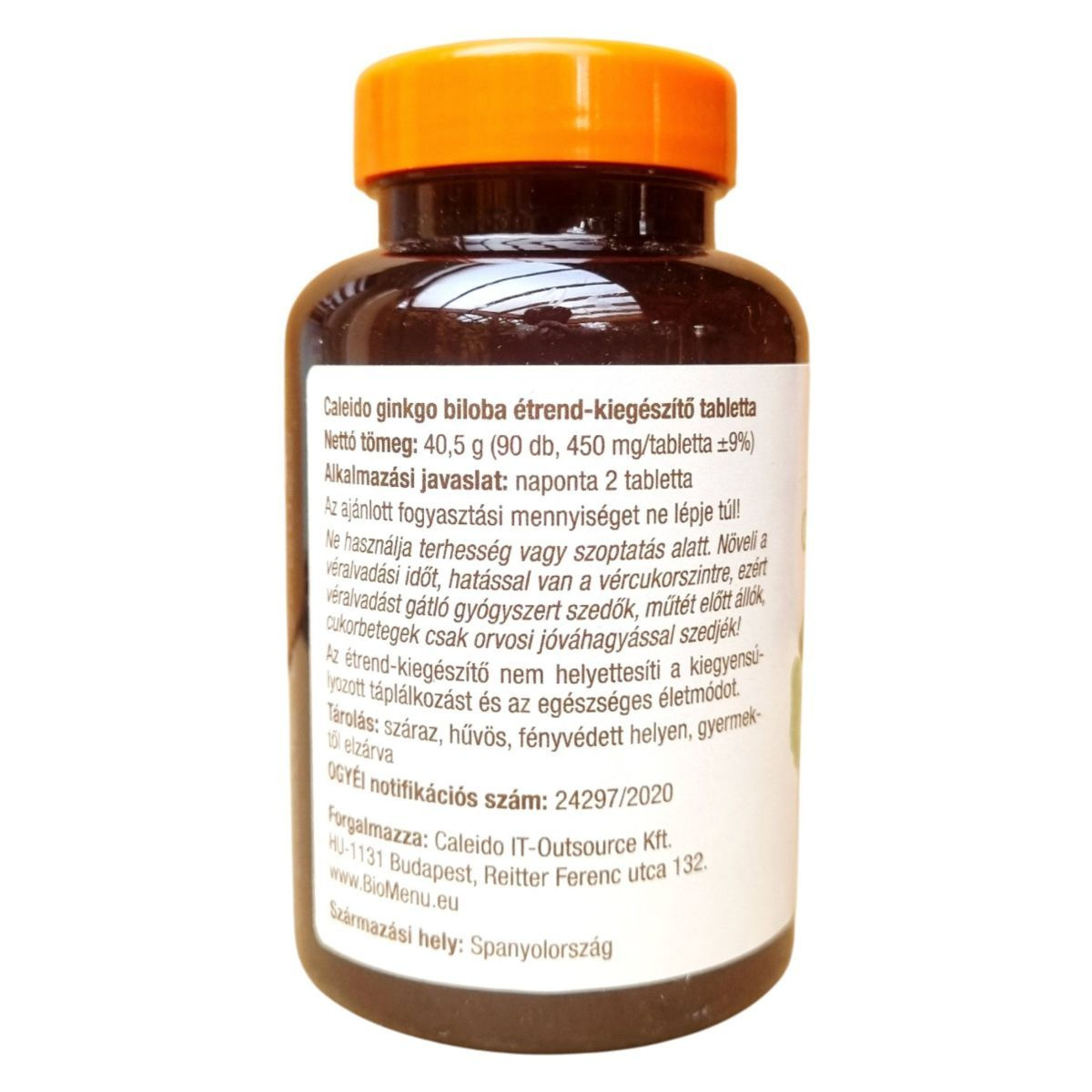 A Caleido Ginkgo Biloba étrend-kiegészítő tabletta Spanyolországból származik, és a Caleido IT-Outsource Kft. forgalmazza. A termék 90 tablettát tartalmaz, amelyek mindegyike 450 mg-os. A ginkgo biloba levél por és kivonat kombinációja segíthet a kognitív funkciók támogatásában és a vérkeringés javításában. A termék flavonoidokat és laktonokat is tartalmaz, amelyek antioxidáns hatásúak lehetnek. Fontos, hogy a terméket ne használják terhesség vagy szoptatás alatt, és csak orvosi jóváhagyással szedjék azok, akik véralvadást gátló gyógyszert szednek, műtét előtt állnak, vagy cukorbetegek. A terméket száraz, hűvös, fényvédett helyen, gyermektől elzárva kell tárolni.