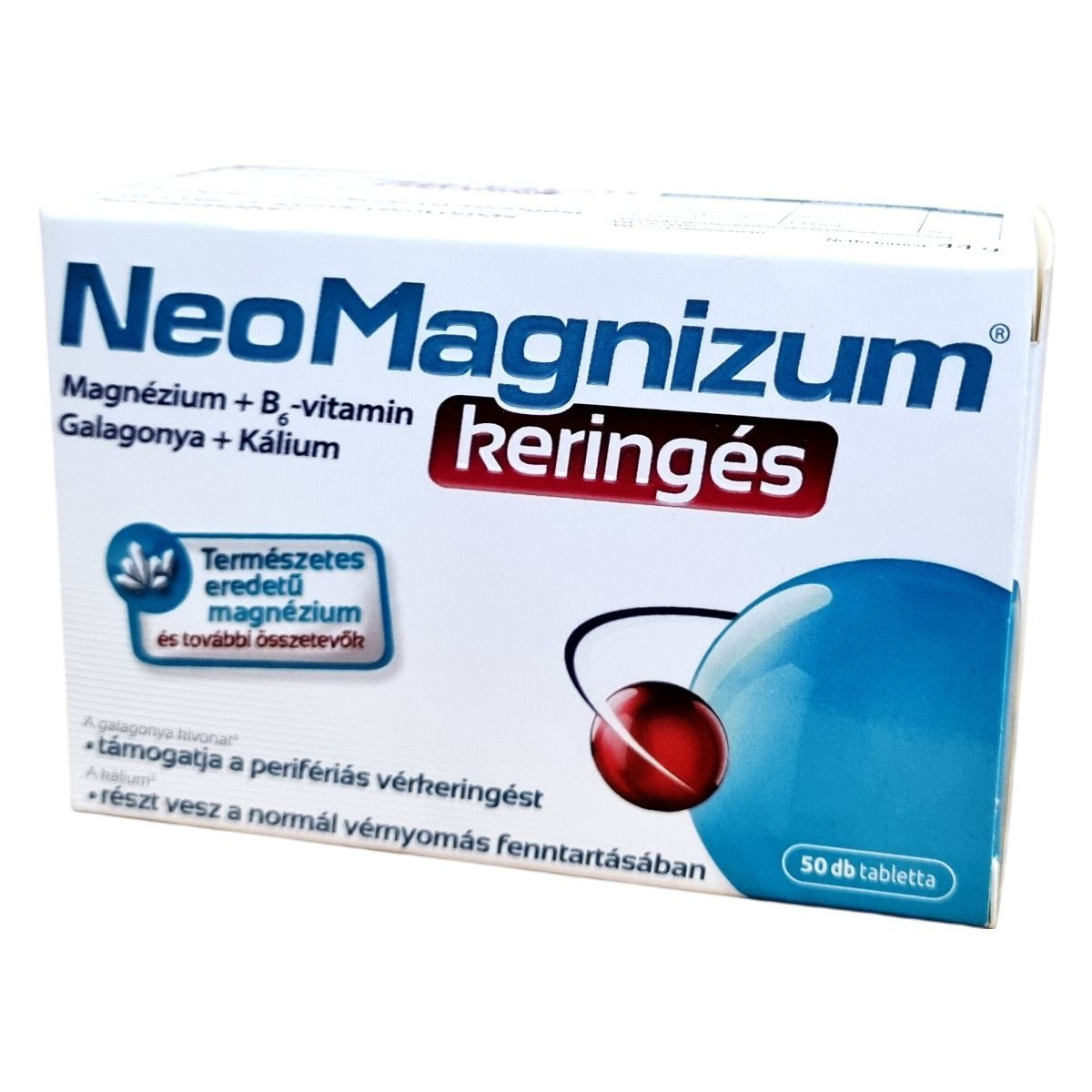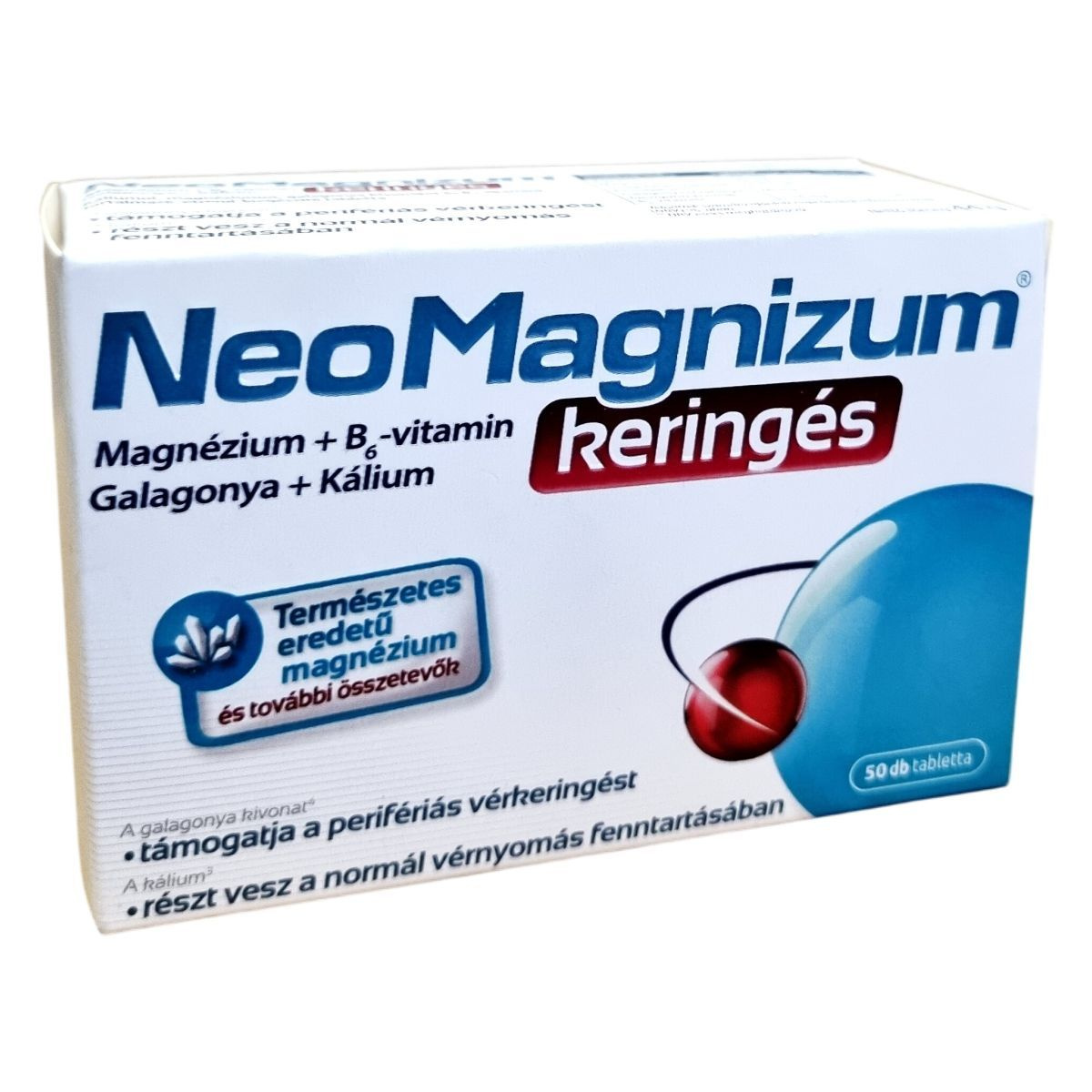 A NeoMagnizum® tabletta magnéziumot, B6-vitamint, galagonya kivonatot és káliumot tartalmaz, amelyek támogathatják a normál vérkeringést és vérnyomást, valamint hozzájárulhatnak az idegrendszer és az izomműködés megfelelő működéséhez.