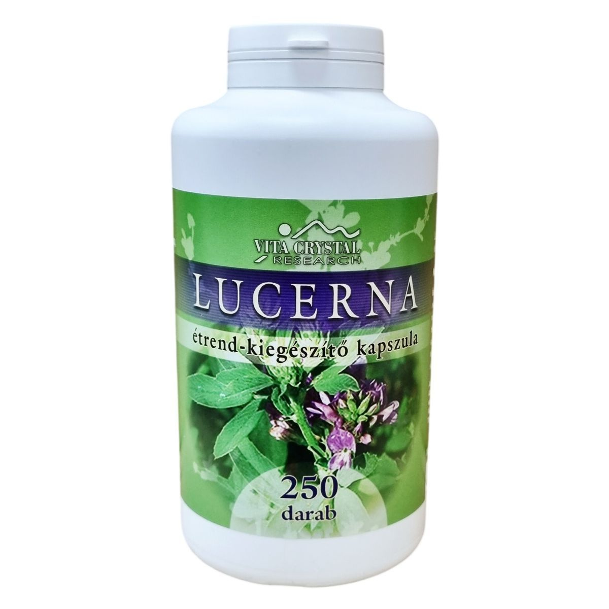 A Vita Crystal Lucerna étrend-kiegészítő kapszula 250 darabos kiszerelésben kerül forgalomba. A kapszula fő összetevője a lucernafű őrlemény, mely polifenolokat tartalmaz, különösen bioflavonoidokat, melyeket a Flavin7 bioflavonoid komplex biztosít vörös szőlő- és más gyümölcsmagból származó szárítmányok formájában. A termék zöld kapszulája hipromellózból készül, mely cink-oxiddal, karragénen alapuló sűrítőanyaggal és glicerin emulgeálószerrel egészül ki. A csomag nettó tömege 130 gramm, a kapszulák egyenként 520 mg súlyúak. A termék a napi 1 vagy igény esetén 2 kapszulás adagolásban javasolt, bő vízzel történő lenyeléssel. Felhívjuk a figyelmet arra, hogy az ajánlott mennyiség túllépése nem javasolt, és a készítmény nem helyettesíti a változatos, kiegyensúlyozott étrendet és az egészséges életmódot.