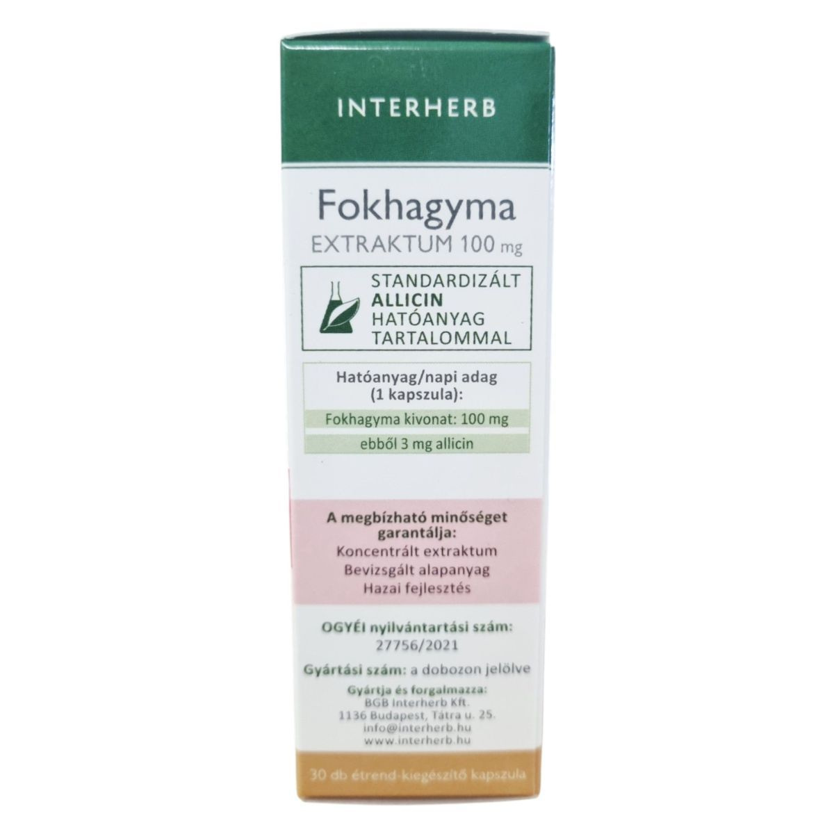 Fokhagyma kivonat: 100 mg, ebből 3 mg allicin