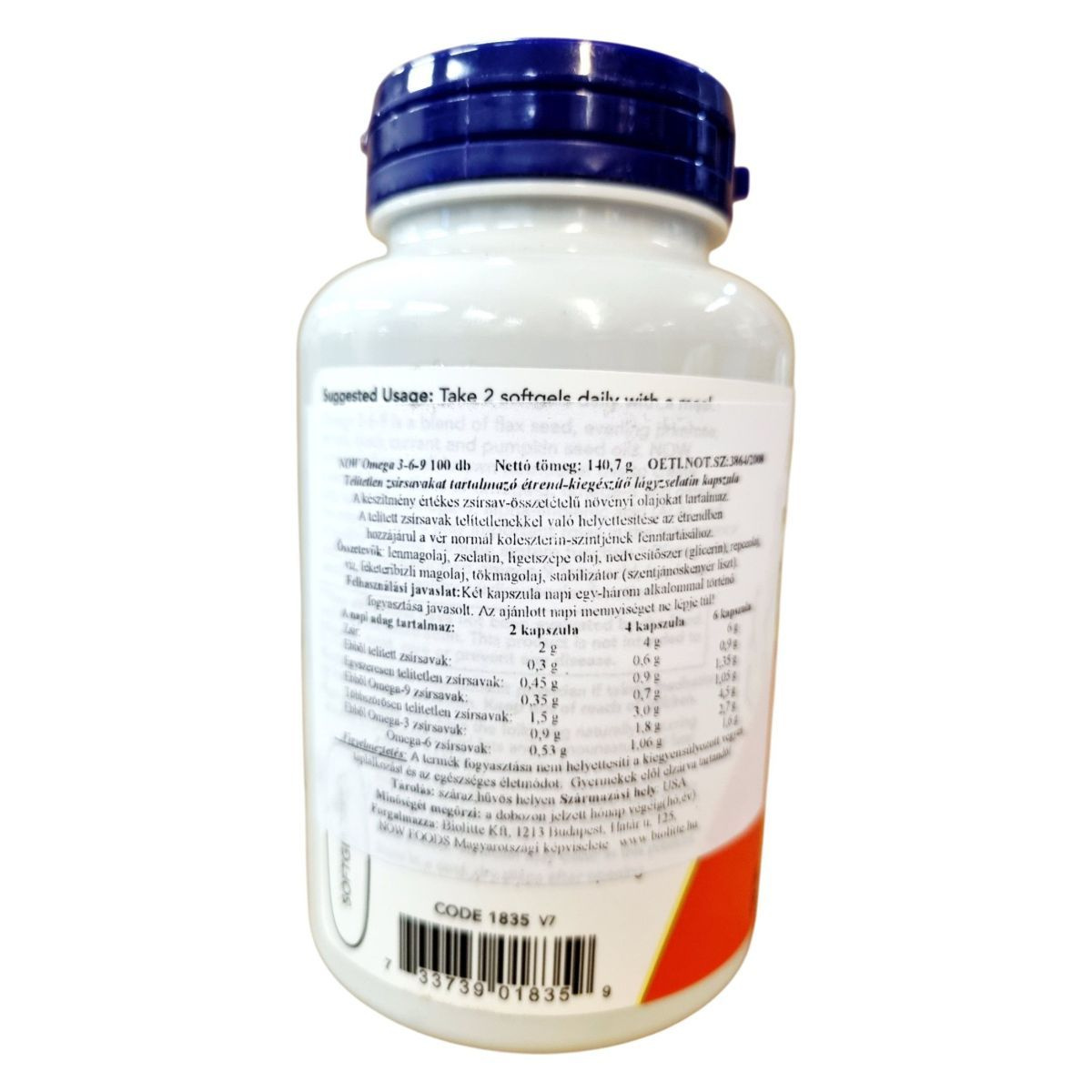 A NOW Omega 3-6-9 étrend-kiegészítő egy telítetlen zsírsavakat tartalmazó lágyzselatin kapszula, amely különböző növényi olajok értékes zsírsav-összetételét kínálja. A termék hozzájárulhat a vér normál koleszterinszintjének fenntartásához, és támogatást nyújthat az egészséges bőr és az immunrendszer számára. A készítmény organikus lenmagolajat, ligetszépe olajat, repceolajat, feketeribizli magolajat és tökmagolajat tartalmaz. A termék hexánmentes, és nem tartalmaz élesztőt, búzát, glutént, szóját, kukoricát, tejet, tojást, halat vagy kagylót. A GMP minősítés biztosítja a termék minőségét és biztonságát.