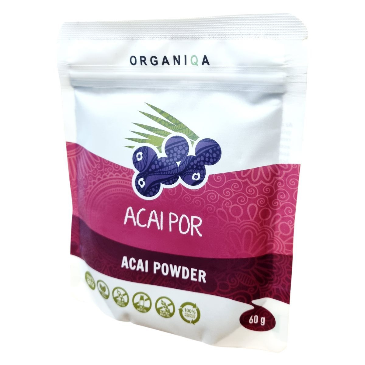 Az Organiqa Acai Por egy 100% bio termék, amely az Euterpe oleracea, azaz az acai bogyó gyümölcséből készül. A termék fagyasztva szárítással, más néven liofilizálással készül, ami lehetővé teszi, hogy megőrizze a gyümölcs természetes színét, ízét és tápanyagtartalmát. Az acai bogyó Brazíliából származik, és kiemelkedő antioxidáns tartalommal rendelkezhet, valamint gazdag lehet aminosavakban, esszenciális zsírsavakban, vitaminokban (B és C), ásványi anyagokban és nyomelemekben. A termék 100% újrahasznosítható tasakban kapható, és a műanyag szelektív hulladékgyűjtőbe dobható. Az acai por nem EU-mezőgazdaságból származik, és ellenőrzött ökológiai gazdálkodásból származó termék, amelyet a Biokontroll Hungária Nonprofit Kft. ellenőriz.