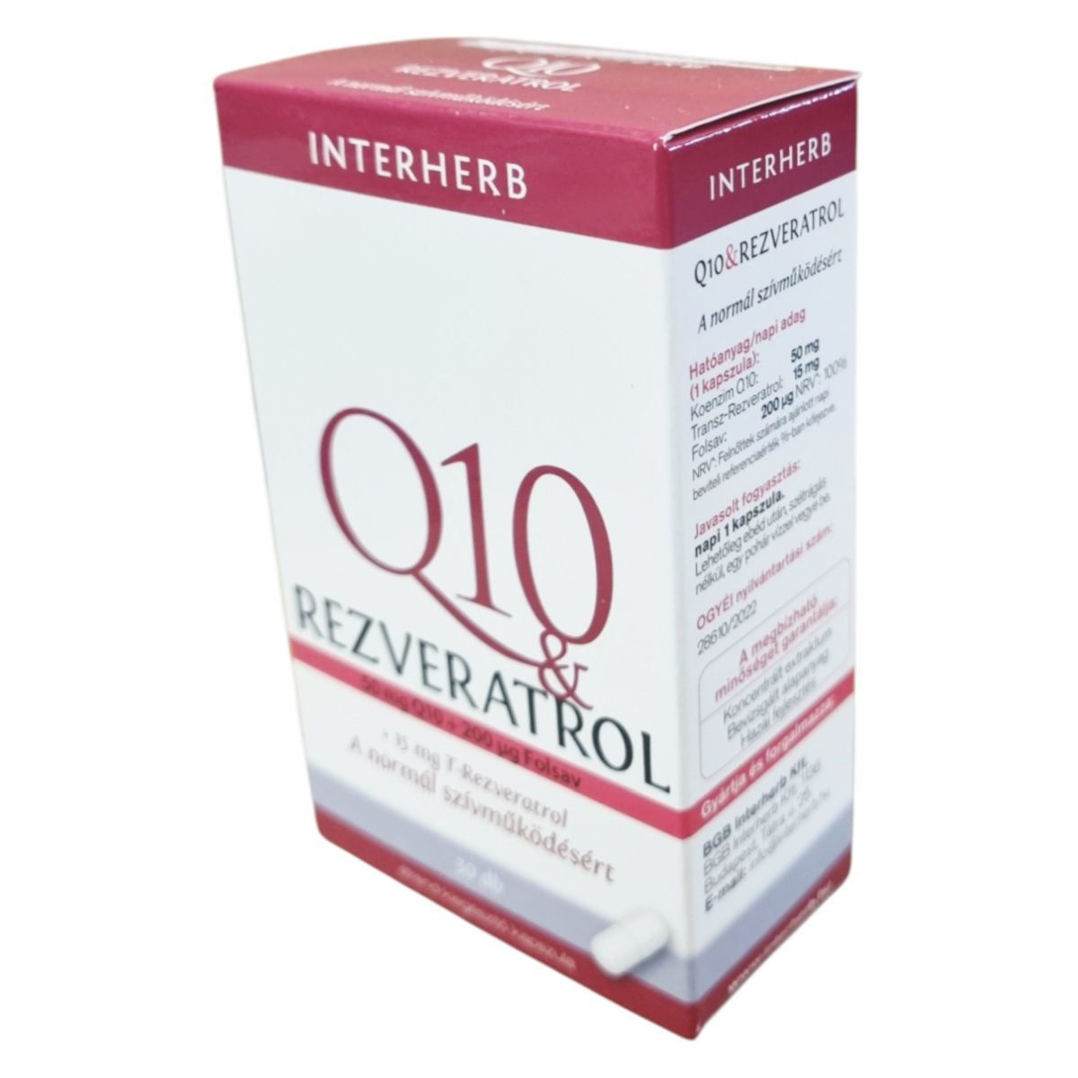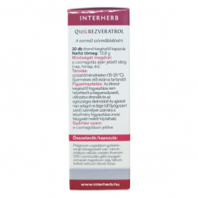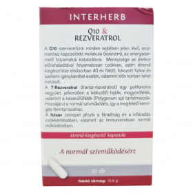 Az INTERHERB Q10 & REZVERATROL étrend-kiegészítő kapszula a normál szívműködés támogatására készült. A koenzim Q10 az energiatermelő folyamatok katalizátora, amelynek mennyisége az életkor előrehaladtával csökkenhet, így kiegészítése 40 év fölött, fokozott fizikai és szellemi igénybevétel esetén, valamint idős korban lehet indokolt. A transz-rezveratrol egy polifenolos vegyület, amelyet a kékszőlő fajták, mogyorófélék és keserűfűfélék tartalmaznak, és hozzájárulhat a normál szívműködés fenntartásához. A folsav szerepet játszhat a fáradtság és kifáradás csökkentésében, valamint az immunrendszer normál működésében. A termék koncentrált extraktumokat és bevizsgált alapanyagokat tartalmaz, hazai fejlesztés eredménye.