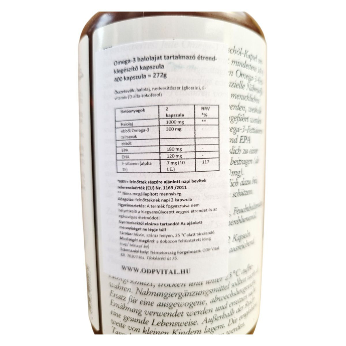 Az Omega-3 halolaj kapszula a SANCT BERNHARD márkától 400 kapszulás kiszerelésben érhető el. A termék magas minőségű, biológiailag aktív Omega-3 zsírsavakat tartalmaz, melyek közül az EPA és DHA különösen fontosak lehetnek a szív- és érrendszer támogatásában. Az E-vitamin antioxidáns hatása révén hozzájárulhat a sejtek védelméhez. A termék Németországban készül, és a Kräuterhaus Sanct Bernhard KG gyártja. A kapszulák halolajat, nedvesítőszert (glicerin) és E-vitamint tartalmaznak, és napi 2 kapszula fogyasztása javasolt felnőttek számára. Fontos, hogy a terméket gyermekektől elzárva tartsuk, és ne lépjük túl az ajánlott napi mennyiséget.