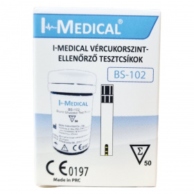 Az I-MEDICAL vércukorszint-ellenőrző tesztcsíkok, BS-102 típusú termék kompatibilis az I-Medical BG-208 vércukormérőkkel, és friss kapilláris teljes vérből történő mérésre szánt in vitro diagnosztikai eszköz. A tesztcsíkokat nem szabad lenyelni és nem alkalmasak emberi fogyasztásra. A használat során kerülni kell a sérült, hajlított vagy újrahasznált tesztcsíkokat. A termék 50 darabos kiszerelésben érhető el, és a csíkokat hűvös, száraz helyen kell tárolni 1-30°C között, lefagyasztani vagy hűtőben tárolni tilos. A felbontástól számított 3 hónapon belül el kell használni a csíkokat. Az eszköz rendelkezik CE-jelzéssel (CE 0197) és az IVD minősítéssel, garantálva ezzel megfelelőségét és biztonságát.