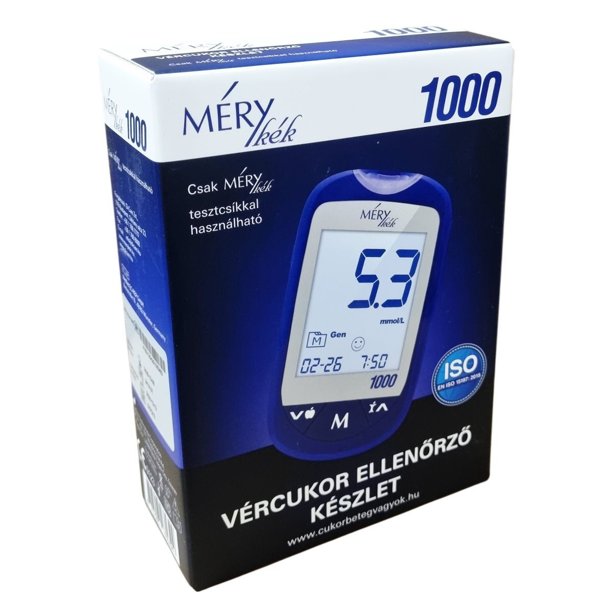 A készülék csak MÉRY kék tesztcsíkkal használható. Tartsa be a használati útmutatóban foglaltakat, és figyeljen az étkezés előtti vagy utáni mérés időzítésére. A készülék nem igényel kódolást, de használat előtt olvassa el a kezelési útmutatót.