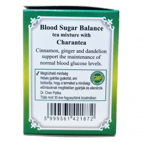 A vércukor egyensúly teakeverék hatékonyan egyesíti a balzsamkörte (Momordica charantia), gyermekláncfű, fahéj, édesgyökér és gyömbér természetes előnyeit. A fahéj, a gyömbér és a gyermekláncfű támogatják a normál vércukorszint fenntartását. A termék több mint 30 éve fogyasztók bizalmát élvezi a Dr. Chen Patika minőségi gyártási gyakorlatával, amely biztosítja a megbízható és ellenőrzött termék előállítását. A teakeverék 20 darab filterből áll, melyek aromazáró csomagolásban vannak, így megőrzik frissességüket és hatóanyagaikat.